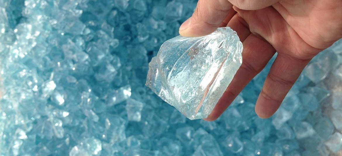 Clear, vitreous glassy chunks
